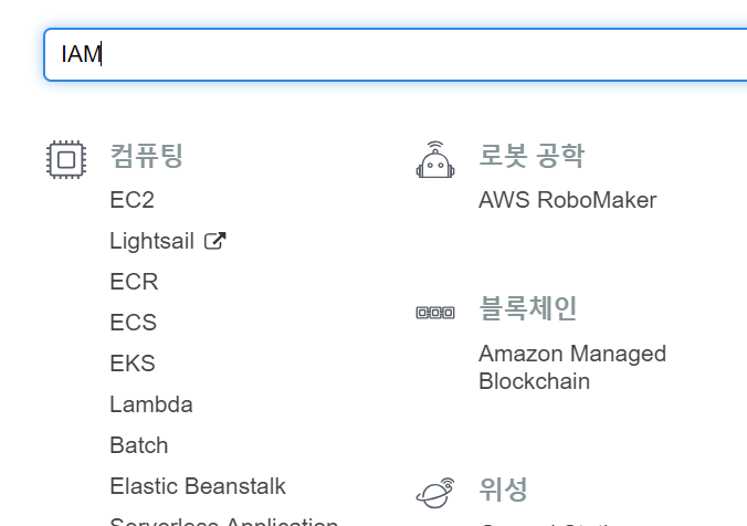 4. IAM 키를 만든다. 자세한 사항은 검색해서 하도록 한다. 여기서는 있다고 가정한다.