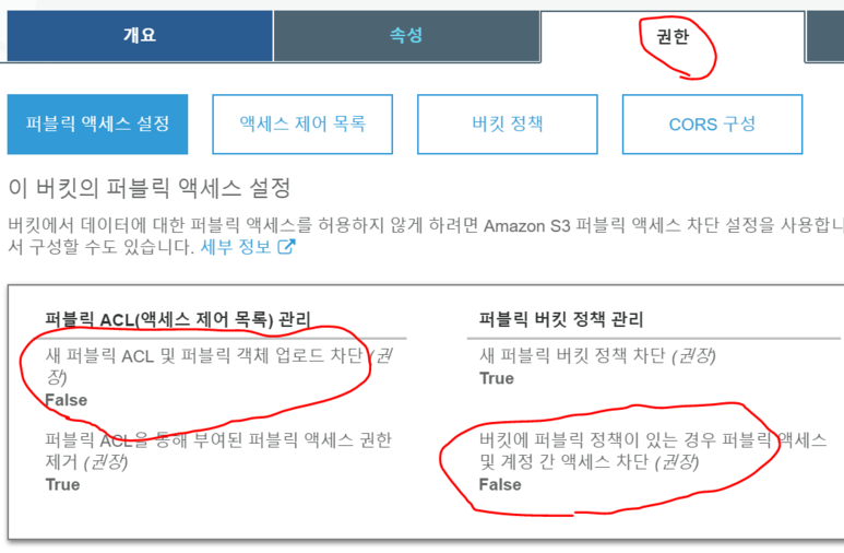 3. 버킷의 권한을 Public으로 변경한다. (테스트 용이므로 퍼블릭 엑세스 가능하도록 변경)